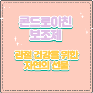 참고: 이 글은 일반적인 정보 제공을 목적으로 하며, 개별적인 상담이나 의학적인 조언을 대체하지 않습니다. 콘드로이친 보조제 사용 전에 의사와 상담하는 것이 좋습니다.